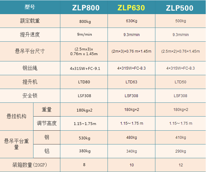 ZLP630型高處作業(yè)吊籃,額定載重量為630Kg,平均提升速度為9-11m/min,使用直徑8.3mm的鋼絲繩及擺臂式防傾斜安全鎖保證作業(yè)的安全性。懸吊平臺(tái)為拼裝式平臺(tái),標(biāo)準(zhǔn)節(jié)長(zhǎng)為2米。欄桿材質(zhì)分為鋼質(zhì)和鋁質(zhì)兩種,表面處理分為噴塑和熱鍍鋅兩類,可根據(jù)需求定制。